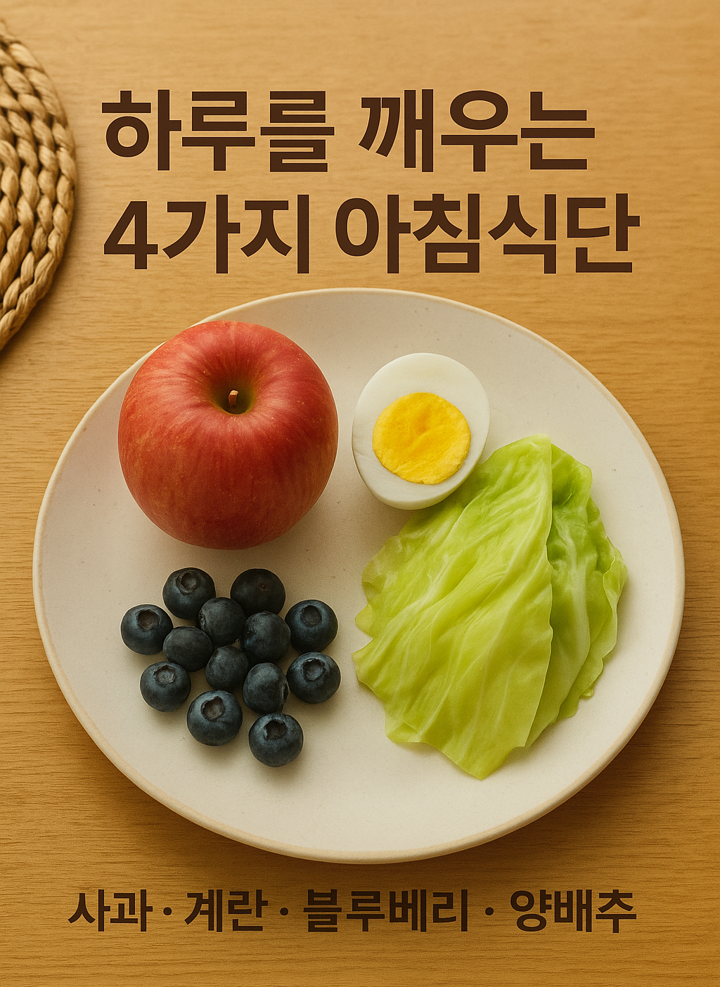 ▶ 추천 구성 : 사과 1개 + 블루베리 한 줌 + 삶은 계란 1개 + 데친 양배추 3~4 잎 → 저칼로리·고포만감·균형 영양